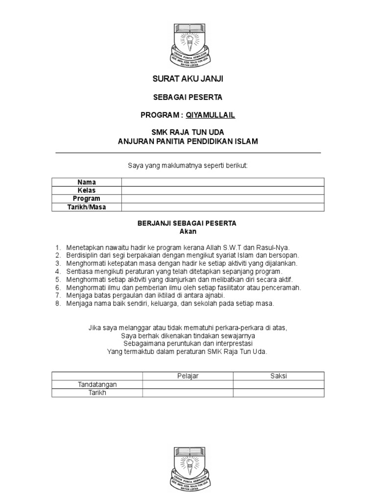 SELFUEL pekeliling dan surat pekeliling serta peraturan dan arahan lain yang dikeluarkan dan dikuatkuasakan oleh Pengurusan SELFUEL dari semasa ke semasa sepanjang berada di. Apa - apa arahan yang terpakai kepada pelajar - pelajar Universiti Teknologi Malaysia Universiti yang dibuat dari semasa ke semasa sepanjang saya menjadi seorang pelajar Universiti. Contoh Surat Aku Janji Pelajar Sekolah Menengah - Soal dan kunci jawaban pat penjas orkes smp kelas 8 kurikulum 2013 tahun pelajaran 2019 2020 soal dan kunci jawaban.